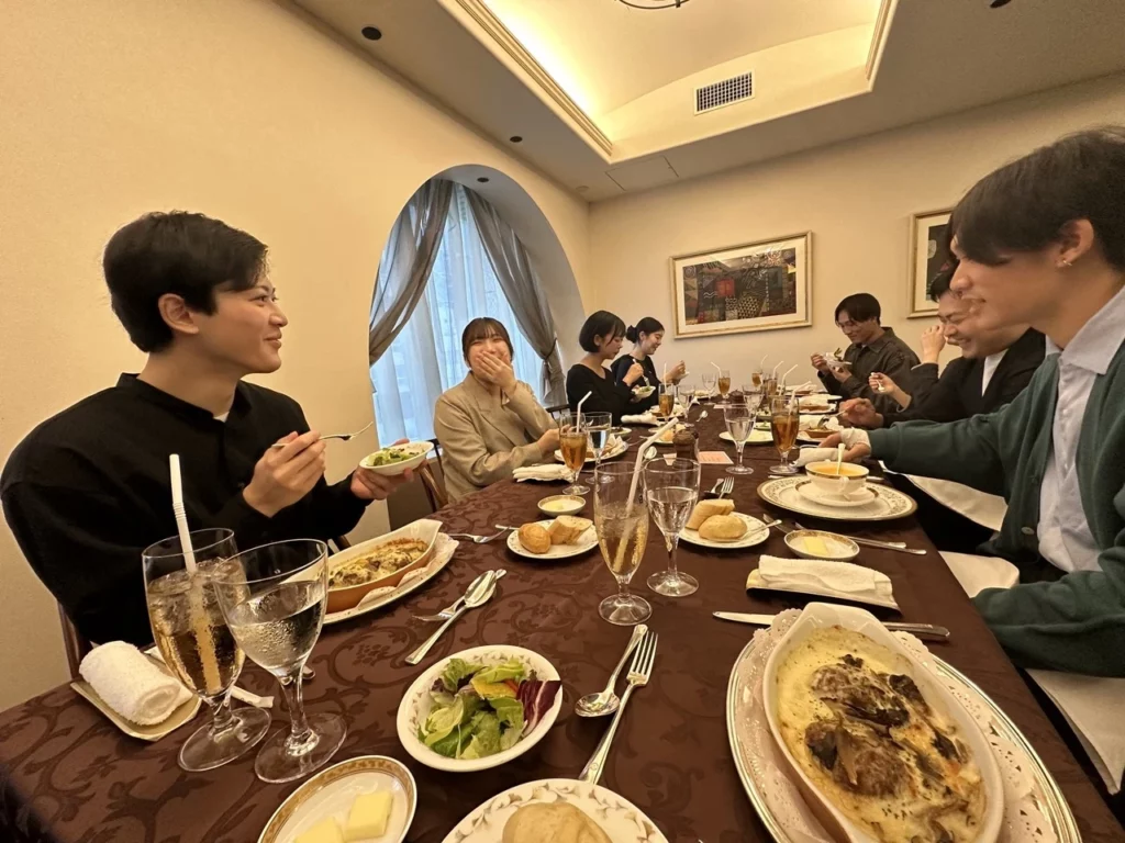 ランチ会では、普段の仕事の話だけでなく、キャリアに関するアドバイスや、学生時代の経験、さらには将来についても気軽に話し合うことができます。インターン生にとっては、働く現場を知るだけでなく、自分の将来を考えるうえで役立つフィードバックが得られる貴重な機会です。おしゃれな空間でリラックスした時間を
