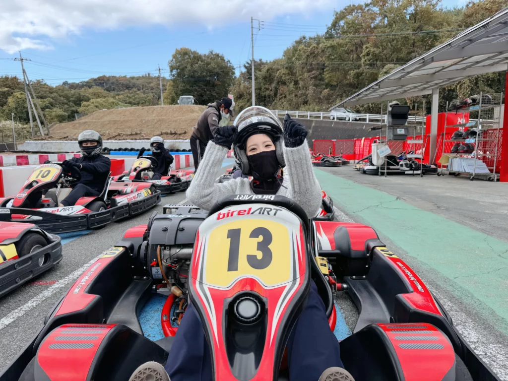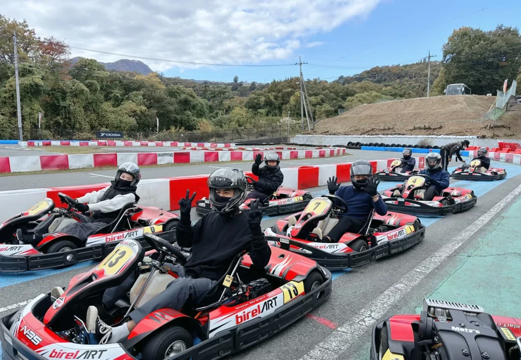 社員旅行の幕開けを飾ったのは、山梨県「AZ山梨サーキット」でのゴーカート競争です。社員全員が役職や年齢を超えて平等なスタートラインに立ち、「誰がアドバイザーナビで一番速いのか?」と真剣勝負が繰り広げられました。