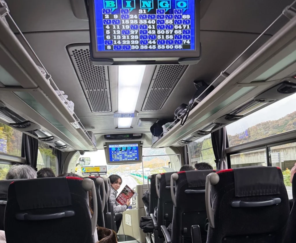 翌日、一行が向かったのは長野県松本市にある「星野リゾート界 松本」。移動中のバス内では恒例のビンゴ大会が行われ、笑いと歓声が絶えませんでした。